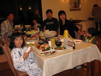 夕方になり、かなり冷え込んできたので、今夜の宿の三太さんの会社の保養所に向かった。 | 近くのゴルフ場で、石川遼選手のゴルフの試合をやっていたので、少し渋滞していたが 30分位で到着した。 外観も中もまるでホテルのように立派だった。 ゆっくりとお風呂に入って、夕飯時には、お腹がペコペコになっていた。(笑) シャブシャブ食べ放題コースを注文してくれていたのだが、その他にも お寿司、帆立焼きなど他の料理もついていた。 →ここ(写真が変わるまで少し時間がかかる) あまりの美味しさに、食べ過ぎて腹8分目ならず、腹12分目位食べて苦しい〜。反省!