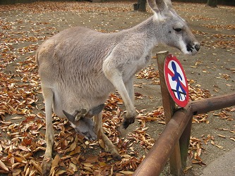 カンガルーのお腹にも赤ちゃんがいた。 お腹の中から首を伸ばして草を食べていた。 | そのうち、袋から出てきた。 その姿を見てビックリ〜 思ったより大きいのだ。 誰かが、お母さんとそんなに変わらないと言ったので、みな大笑いしていた。 カンガルーの写真のスライドショーは ここ 珍しい白いカンガルーや、エミュー、カピパラ、リスザルなどに餌をあげたり、 うさぎやモルモットなどをを抱っこしたりと、動物たちと触れ合う事が出来て 子供達は楽しそうだった。 昔、動物園では、触るなんて事は出来なかったよね。 動物たちとの触れ合いビデオは ここ 他の動物たちのビデオは ここ ここ ここ ここ