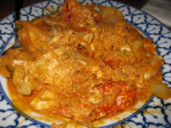 ワタリ蟹のカレー炒めは、お店で1番人気のメニューとか。。 | カレーと云っても、唐辛子味のカレー味なので、やはりタイ料理の味付け。 その味付けが、私の好みに合って、1番人気が分かると思った。