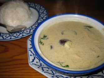 トムヤンクンとグリーンカレーは私の大好きなタイ料理。 美味しかった〜 | ジムで知り合いになったOさんの弟さんが、お店のオーナーで、手伝っているOさんが タイのビール2本を差し入れてくれ、デザートにマンゴウまで。。 おもいがけず、嬉しいサービスと美味しいタイ料理を食べて、大満足な夕食だった。 |