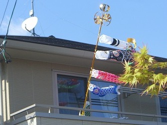 美映からは、有佳里の授業参観の様子を写した写真が届いた。 まっすぐ伸ばして手を挙げている有佳里。 始めての参観日の記念写真だね。 学校生活にも慣れて楽しそうに通っているらしい。 そして、中々撮れない朝大の歩く様子のビデオが届いた。 ママがビデオを構えると、せっかく歩いていても、ハイハイして飛んでくるのでビデオが 撮れないらしい。 今日はパパに撮ってもらったとか。。。ビデオはここ まだ9ヵ月なのに歩きだした朝大は、たいしたものだ。 がっちりとした体格で、そのうち光汰朗お兄ちゃんとけんかしたら、強そう〜(笑) 朝大の初節句のお祝いの鯉のぼりが元気良く、泳いでいる写真も送ってくれた。 庭に設置する様な大きな鯉のぼりではないが、ベランダの鯉のぼりを見て 有佳里と光汰朗が大喜びしているみたいだ。 |
