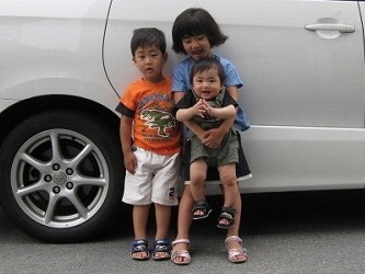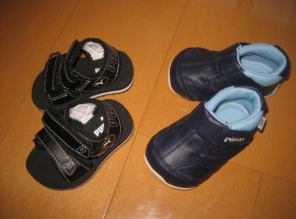 三太さんの浦安の実家に用事があるとの事で、家族5人が愛知から車で来て、 帰りに宇都宮に寄ってくれた。 子供3人を連れての移動は大変だったね。 宇都宮に着いたのは、2時頃だった。 みんな元気で良かった〜 ![]() 数日前に6月30日の朝大の1歳の誕生日 プレゼントは、何がいい?と聞いたら 歩くのが上手になったので、靴がいいかな〜 との事だった。 思いがけず、宇都宮に来る事になったので、 一緒に買いに行こうという事になった。 「赤ちゃん本舗」に幼児用の靴がたくさん 置いてあるとの事で、朝大を連れて出掛けた。 有佳里と光汰朗は、おじいちゃんが公園で 遊ばせてくれるとの事。安心だ。 試着用の靴があり、履かせて歩かせてみて 選ぶ事が出来るので、とっても便利! 結局、ブルーのピジョンの靴と夏用に黒の プーマのサンダルを買った。 家に戻ってから、早速サンダルを履いてベランダで歩るく朝大のビデオを撮った。 →ここ