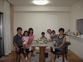 美映家族5人が愛知から遊びに来てくれた。 千葉、浦安の三太さんの実家に寄って、3時頃に宇都宮に着いた。 6月に会っているので、子供達は、そんなに変わっていない様に見えたが、 光汰朗はひらがなが読めるようになっていた。 幼稚園に通う同年齢の子は、ママに教えてもらってひらがなが読めるらしい。 美映は忙しさゆえに、ひらがなを教える事も忘れてしまったのかな?(笑) それで、少し教えたらすぐ覚えてしまったと嬉しそうに話すママだった。 朝大は「こんにちわ」とか「こんばんわ」と言うと頭をちょこんと下げて挨拶を するようになっていた。有佳里が出来るようになった時はもっと大騒ぎしたのにね。(笑)