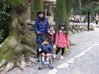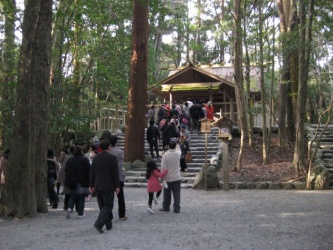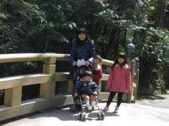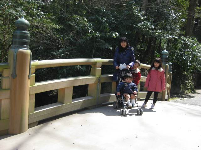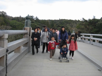 今日は伊勢に1泊で旅行に行く日。 旅館も予約し観光する場所もネットで調べ、プリントアウトし楽しみにしていた。 美映は、珍しく弱気になって引っ越し準備をしていなかった事を後悔していた。 やる事がいっぱいあり過ぎて、旅行どころじゃないという気分。 引っ越しが心配なのだ。 私も心配だったが、2日間、休みなく働いたので中休みと気分転換が必要と思った。 旅行を思い切り、楽しんで来ようと不安な気持ちを押さえて出かけた。 主人運転の車に子供達は大喜びで乗り込んだ。 途中、渋滞にあったが、無事 日本一の神社と云われる伊勢神宮の外宮(げくう)へ。。