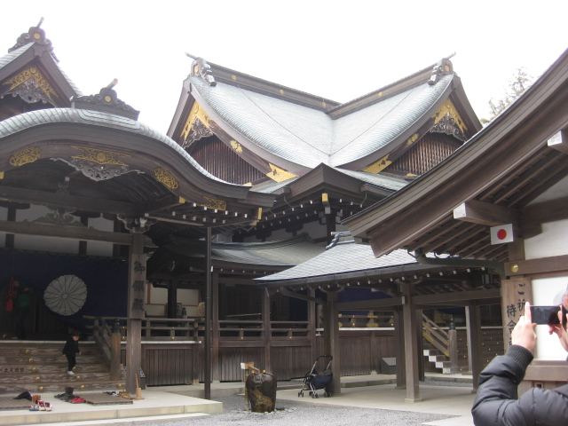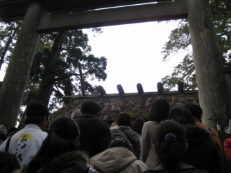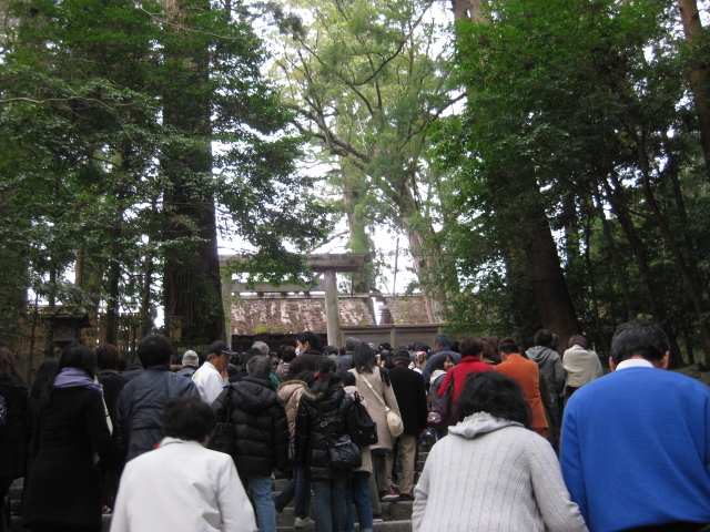 参拝のため列に並んだ。 今日がこんなに混雑していると云う事は、 | お正月はどんなだろうか? 関西方面、愛知方面からの参拝で道路も大渋滞になるらしい。 内宮を出ると4時30分。 時間がないので有名なおかげ横丁に行く事は出来なかった。