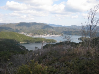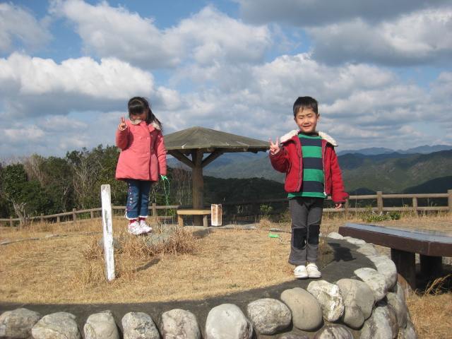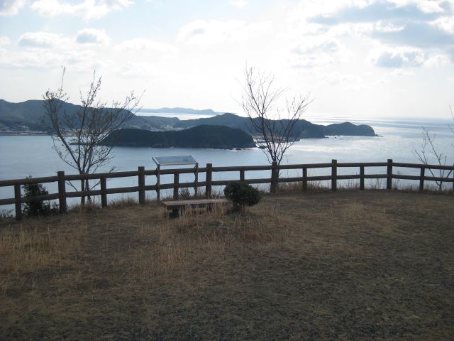 | 礫浦から相可に向う県道722号の途中、道標に沿って右折すると 南海展望公園の駐車場に着く。 ここから階段を5分登ると展望公園。 標高148.9mの小山を展望公園にしている。 頂上はぐるっと360° 周囲に高所無く、五ヶ所湾を目の前にし、360度見渡すことが出来る。