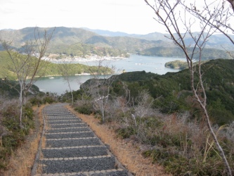 朝大も頑張って「南海展望公園」までの階段を登った。 | 登りきったら、目の前に広がる広大な風景。 海って何故か心が洗われる。