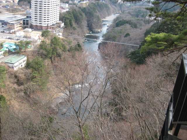 資料より | 2009年に新しい観光スポット「鬼怒楯岩大吊橋」(きぬたていわおおつりばし)は 名勝「楯岩」を結ぶ吊橋で、全長140m、橋桁の幅1.5m、水面からの高さ約37m、 中央部にはバルコニーも設けられる。 橋上からは大岩をぬって流れる鬼怒川の渓谷美と 緑の山々を眺めることができ、「最大の目玉は橋を取り巻く景観」とか。 吊橋を渡ると「楯岩」までは遊歩道が整備され、「楯岩」の頂上展望台からは、眼下に温泉街 遠くに鶏頂山をはじめとする高原山系の美しい山並みが一望できる大パノラマを満喫できる。