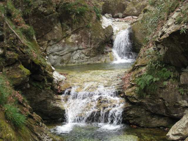 10時過ぎにホテルを出て、また「鬼怒楯岩大吊橋」に寄った。 | きのうは「楯岩」の頂上展望台に行ったので、反対側にある「古窯の滝」と「末広池」を 見に行った。 滝には違いないが、たいした滝ではなかった。 「末広池」にいたっては、水たまりと言いたい位の小さな池だった。(笑) 写真は →ここ