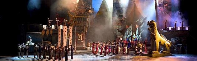 絢爛豪華な舞台は素晴らしいものだった。 大がかりな舞台装置には驚かされた。 | まず、海の中のシーン。 本当に魚が泳いでいるように見える。 漁師が海面から海中に素潜りで降りてくる。 あまりにもリアルで本当に海の中のよう。 音楽に合わせての踊りも素晴らしい。 もちろん衣装も。。 本物の像も登場。 次のシーンでは舞台上に川が出現。そこに飛び込む村人。水しぶきがあがり泳ぎ出す。 川上から川下へと流れるたくさんの灯篭。 この大量の水の仕掛けには驚いた。 そして舞台の装置、シーンの移り変わりは、気がつかない程に自然に変わっている。 2時間位のショーは、圧倒され続けた。 見に来て良かったと思った。 主人は、あまり見たくない様な事を言っていたが、壮大なスケールの舞台に 満足している様子だった。 日本では中々見られない演出だと思った。 心配した朝大は、舞台が始まる前はうるさかったが、生の音楽と踊りが始まると 集中して見ていた。有佳里は空中で舞う天使のシーンが気に入ったようで楽しそうだった。 ただ、光汰朗だけは、睡魔に勝てず、ぐっすりと寝込んでいた。(笑) 私は、なにか絢爛豪華な絵巻物でも見ているような気持ちにもなった。 帰りは、三太さんが運転手さんと迎えに来てくれた。 渋滞がなかったのでホッ! 舞台の様子は写せなかったがパンフレットに載っていた写真をスキャナーした。 ここと ここ