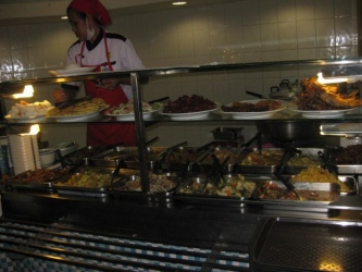 8時から舞台が始まるので、その前にバイキングの夕食を食べる事に。。