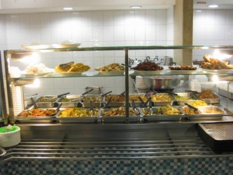 タイ料理だけでなく中華料理、インド料理、西洋料理などもあった。 | 海老フライもあって、子供たちは美味しそうに食べていた。