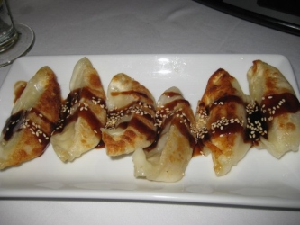 餃子は、中華の餃子とは、ちょっと違っていた。 | 他にも頼んでくれたのだが、蟹を食べるのに忙しくて写真を撮るのを忘れた。(笑) タイスキはセットで2皿を頼んだら、どうも4〜5人前が1皿だったのか、量が多過ぎて 食べられず、タッパーに入れてもらい、家に持ち返った。