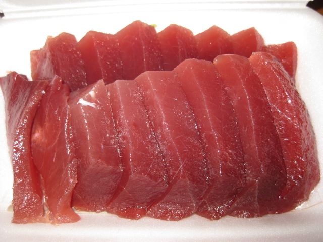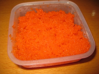 そして、きのう御用聞きにきた魚屋さんに頼んだまぐろの刺身も届いた。 | このまぐろが美味しかった。 日本でも中々食べられない味だ。(笑) 今日のまぐろは冷凍物ではないよと魚屋さんは言っていたとか。。 美映は初め、アボガドとマグロで、わさび醤油で和える積もりだったらしいが、止めにして そのまま お刺身で食べる事になった。 子供たちが大好きなとびっ子もバンコクでは、売っているんだね。 ビックリ〜〜