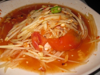 タイ風味付けの帆立。 柔らかくて美味しい〜 | 美映の好きな青パパイヤのサラダ。 かなり辛いが美味しい〜。