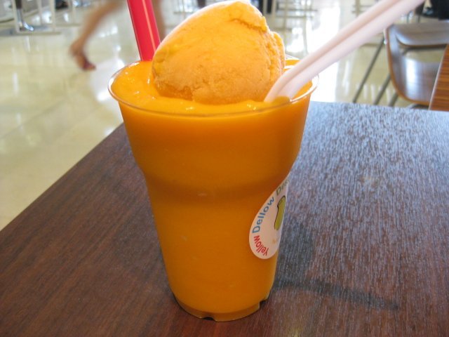 そして、マンゴーのアイスが乗った濃厚なマンゴージュースを美映が買ってきた。 | この間のマンゴージュースとどっちが美味しい?と聞かれたが、優劣つけられないよ〜