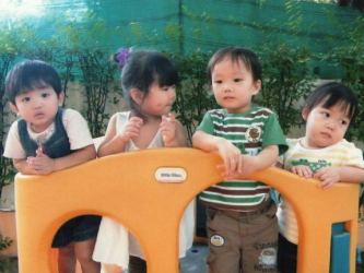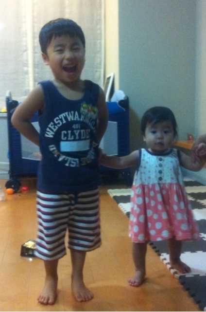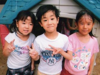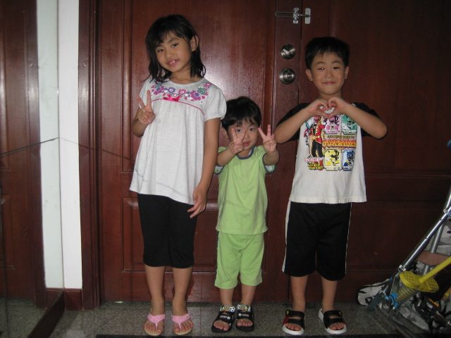 光汰朗はVサインをしてスムーズに撮れた。 それだけお兄さんになったんだね。 | 有佳里はピンクのサンダルを履いて3人の合同写真を撮った。 みんな可愛いね。